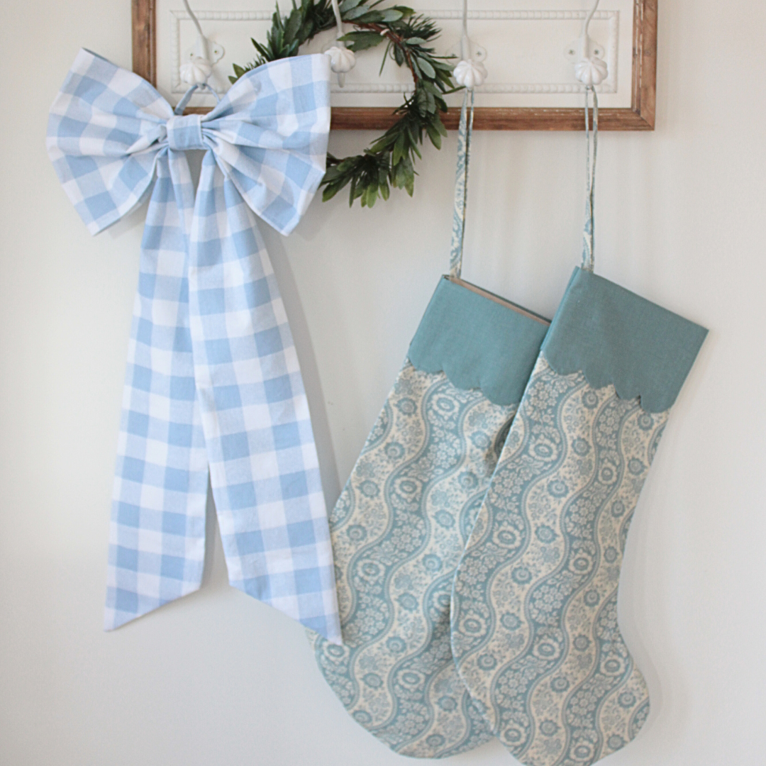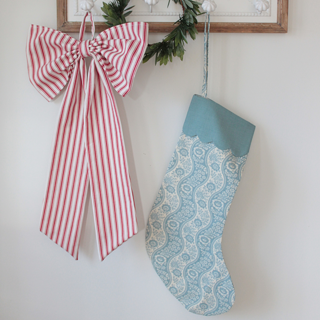 This elegant Christmas stocking features an intricate scalloped design with a blue trellis pattern, combining classic charm with a modern touch. Crafted to enhance your holiday décor, it offers a refined aesthetic that complements any festive setting. Durable and stylish, it’s perfect for adding a sophisticated accent to your seasonal celebrations.