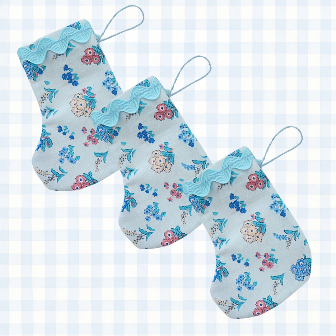 These charming mini stockings are expertly handsewn, featuring the flower show Liberty print. Crafted from beautiful fabric and sized at 10cm by 8cm, they are ideal for gifting or adding a festive touch to your tree or mantle. Their versatile size makes them perfect for a variety of holiday decorations.