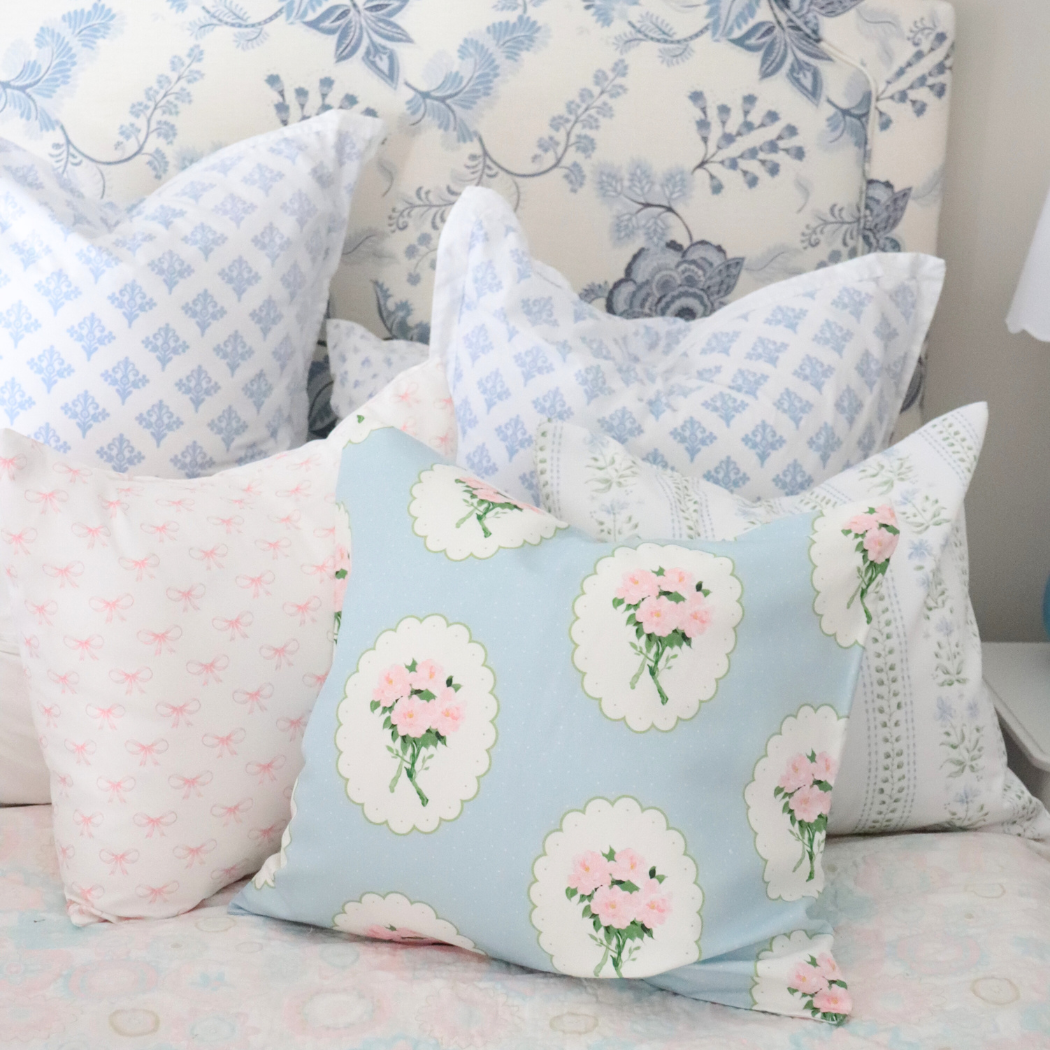 Bring the beauty of a pastel garden to your living space with Pretty Homestyle's Peony Bouquet Cushion Cover, made from a luxurious linen cotton canvas fabric. This charming piece offers a gorgeous soft blue background with a pink peony bouquet design, perfectly accenting the muted shades of a modern living room. 50cm x 50cm in size and with an envelope opening at the back, this cushion cover is the perfect finishing touch to any décor.