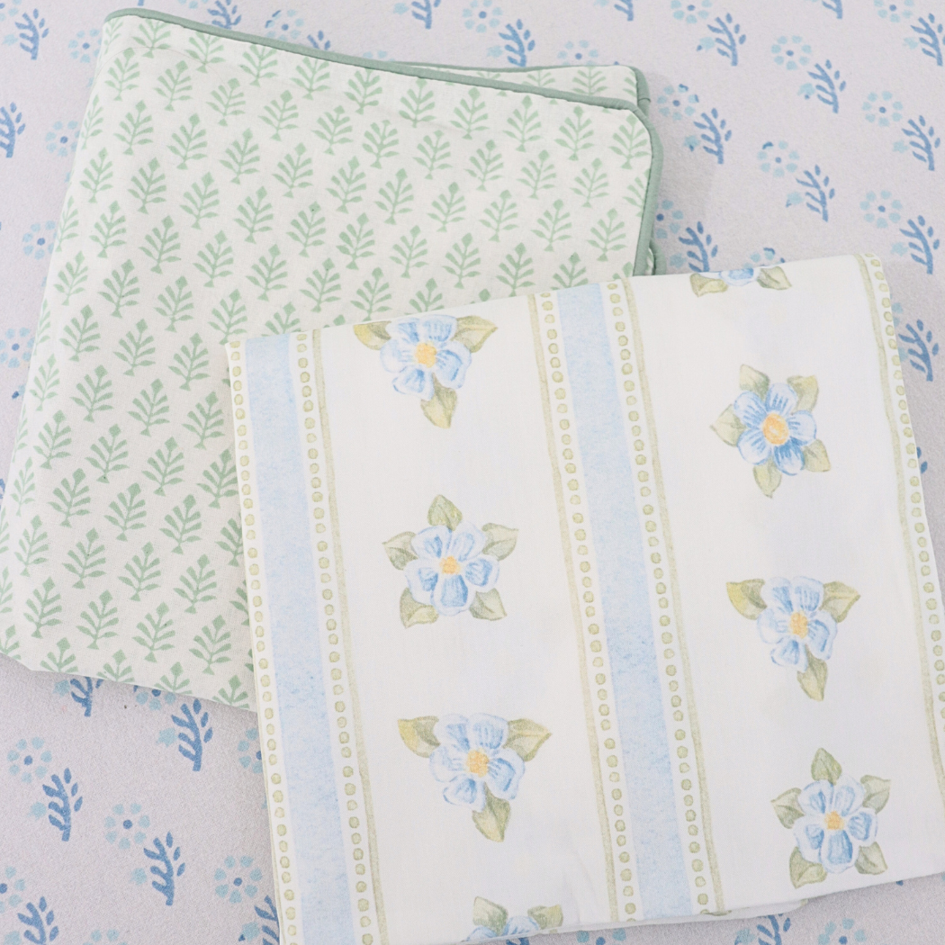 Introduce a touch of romance to your home decor with our floral forget-me-not Cushion Cover. The intricate pattern of blue and green adds a charm and individuality to any living space. Perfect for creating a cozy and inviting atmosphere, this cushion cover is a must-have for the feminine gals.