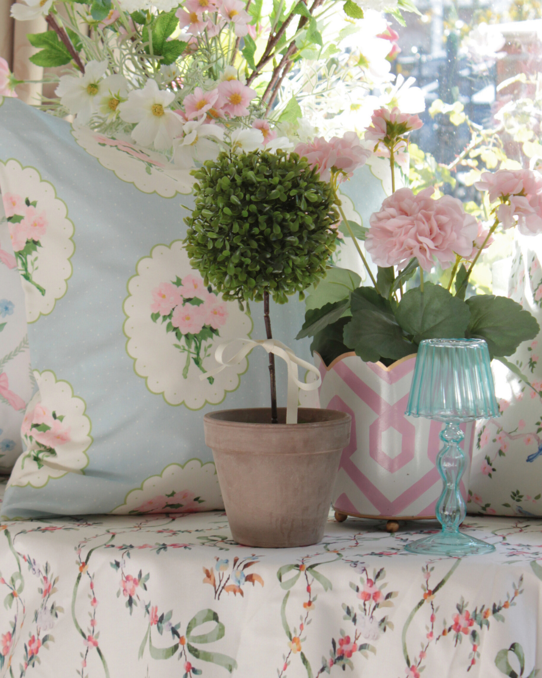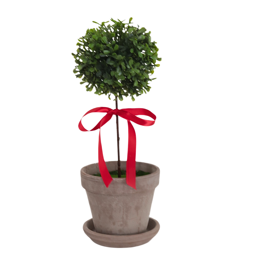 This potted boxwood topiary ball, complete with a beautiful ribbon of your choice, adds a touch of French Country to any space. With a variety of ribbon choices, this topiary ball is a versatile addition to any season or occasion by just changing up the ribbon!
