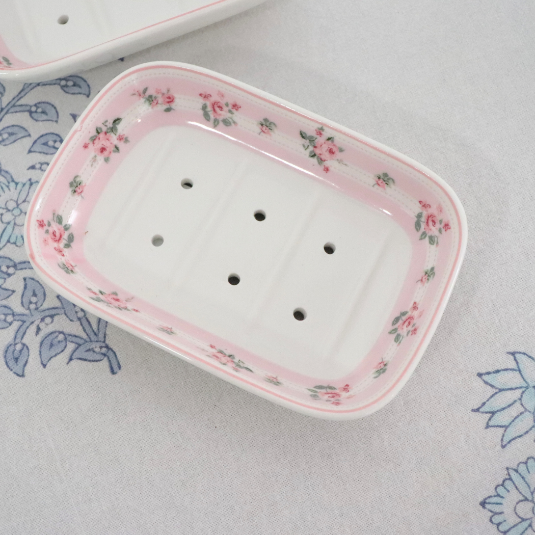 Adorn your bathroom with our Porcelain Soap Dish. The pretty pink and white striped rim and delicate pink roses add a touch of elegance to your everyday routine. Keep your soap dry and organized while adding a charming touch to your space.