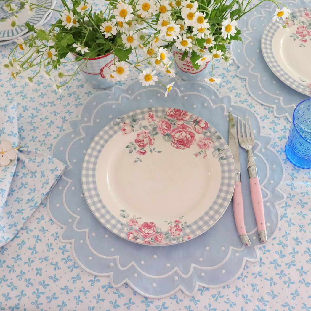 This porcelain gingham floral dinner plate offers an exquisite way to elevate any meal. Crafted with an intricately detailed blue gingham floral pattern and adorned with a delicate gingham edge, this plate will bring refined and timeless luxury to the tablescape.