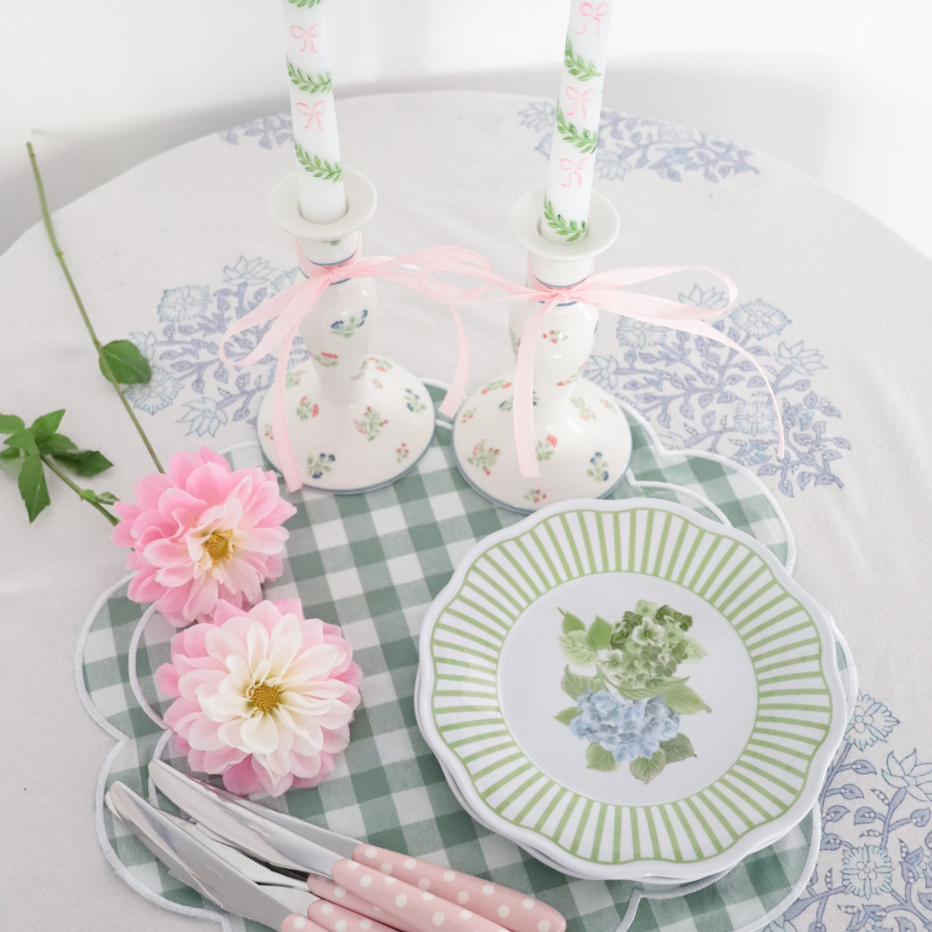 SAY HELLO TO OUR NEWEST MELAMINE PATTERN, THE GORGEOUS NEW HYDRANGEA MELAMINE. A STUNNING PLAY ON SOFT GREENS AND BLUES, THESE MIX AND MACH WITH THE BLUE AS WELL. EACH SALAD PLATES FEATURES A DIFFERENT HYDRANGEA PATTERN AND MEASURES 8.5". BPA FREE AND DISHWASHER SAFE.