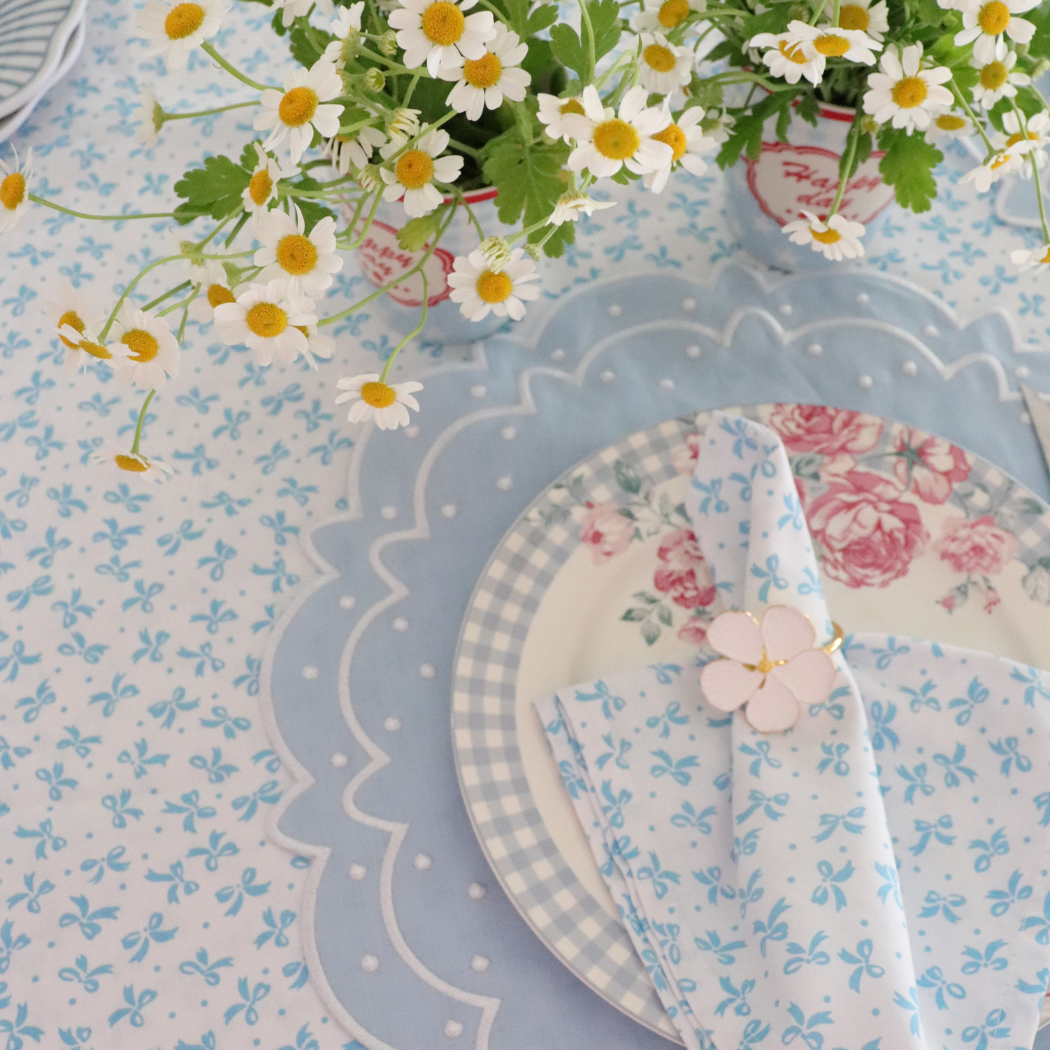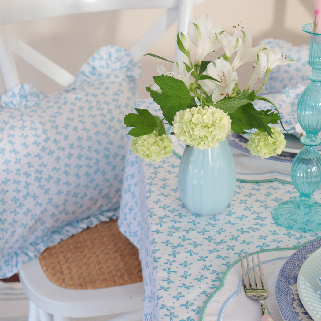 Set a sophisticated table with our Blue Bow Tablecloth. Made from crisp white soft cotton weave, this tablecloth features delicate blue bows for a touch of elegance. Perfect for any occasion, add a touch of luxury to your dining experience with this exclusive piece.