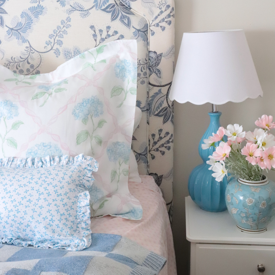 Made from 100% brushed cotton sateen, soft and luxurious with delicate blue bows on white