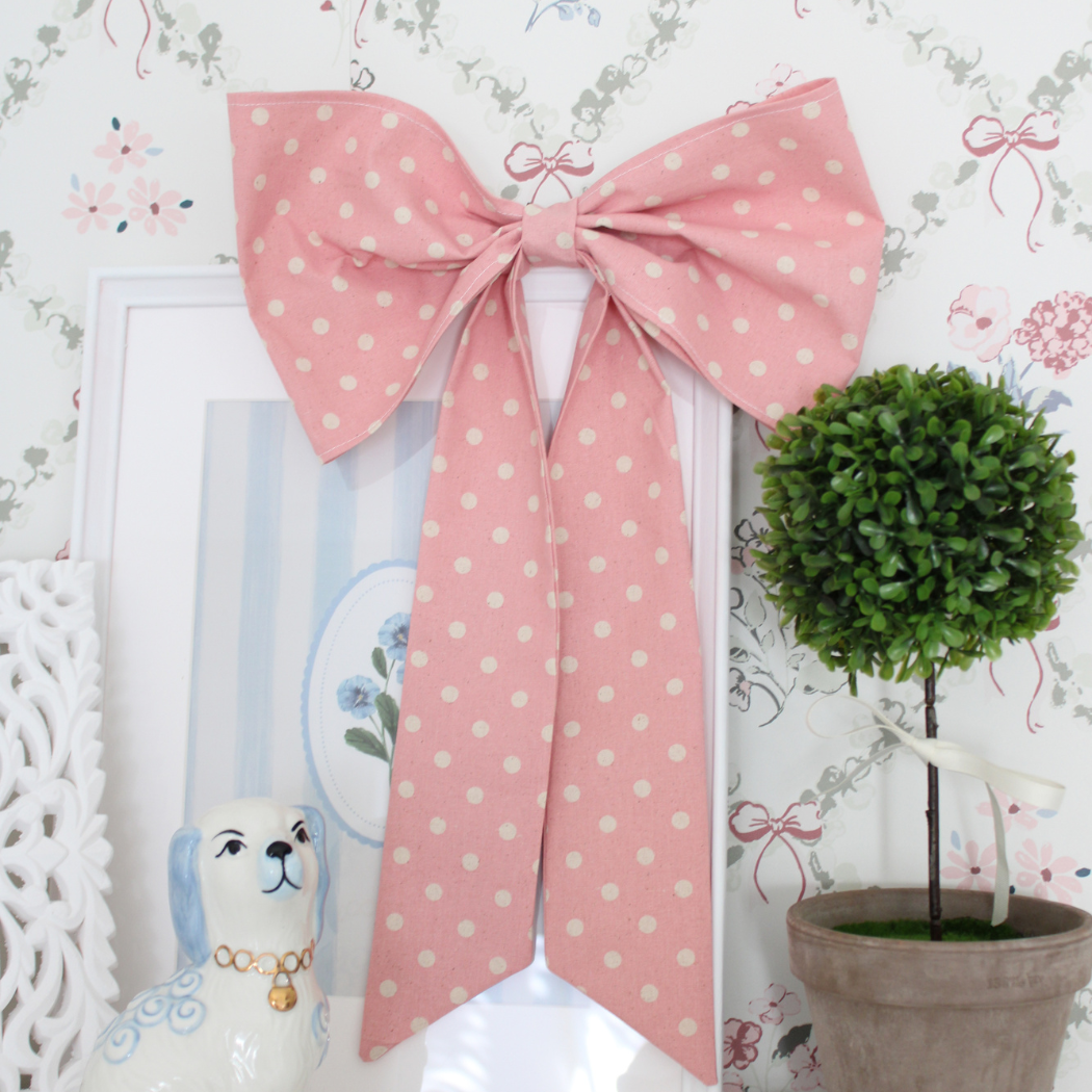 Perfect for all year-round in your house, this fabric wreath Bow features a pretty polka dot pattern on pink It comes with a wire backing so you can easily attach it to whatever you like Because who doesn't love a bow, right?