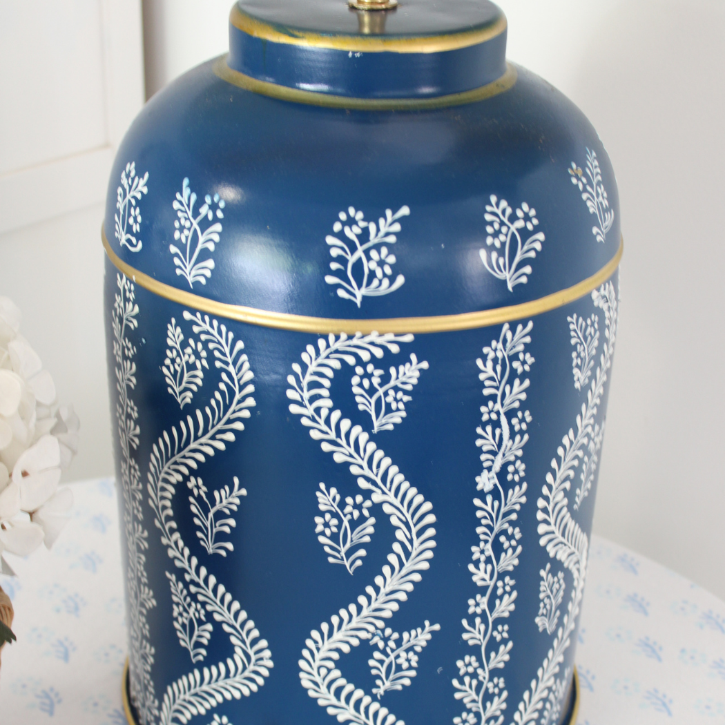 This stylish lamp base is handcrafted in India by skilled artisans. The striking navy and white design is meticulously hand painted, making each piece unique. Enhance any room with this one-of-a-kind lamp base that adds a touch of artistry to your decor.