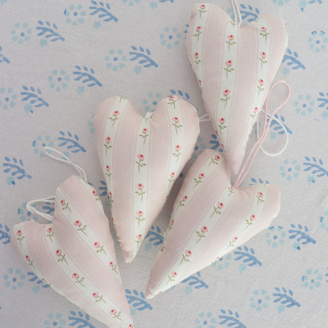 Crafted with exquisite floral fabric, these hearts add a pretty touch to gifting, tabletop, hanging on drawer knobs etc. Handsewn and ready to hang, this lovely decoration is your key to a luxe, rustic-chic interior.
